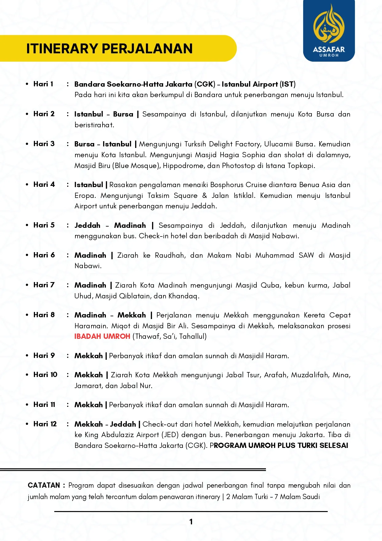 Assafar Classic Journey (Umroh + Turki) | Program 12 Hari