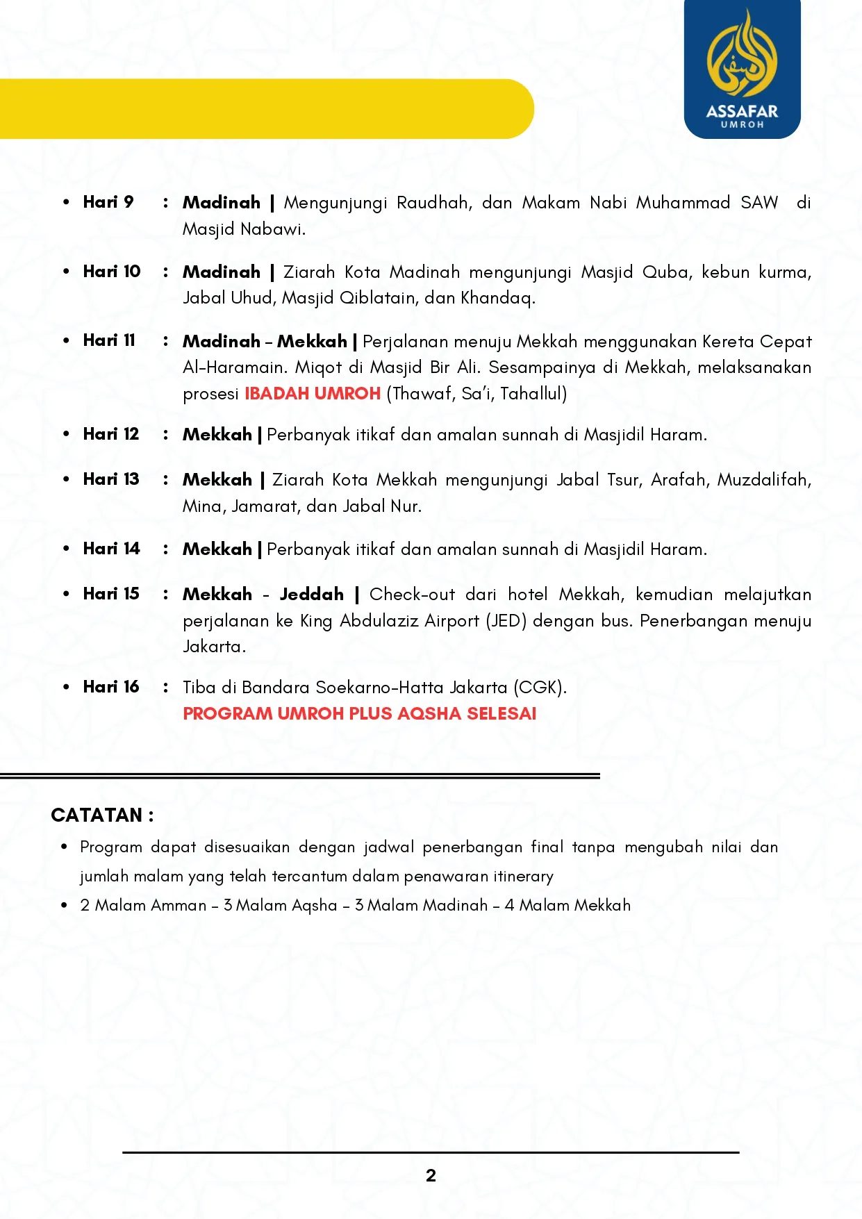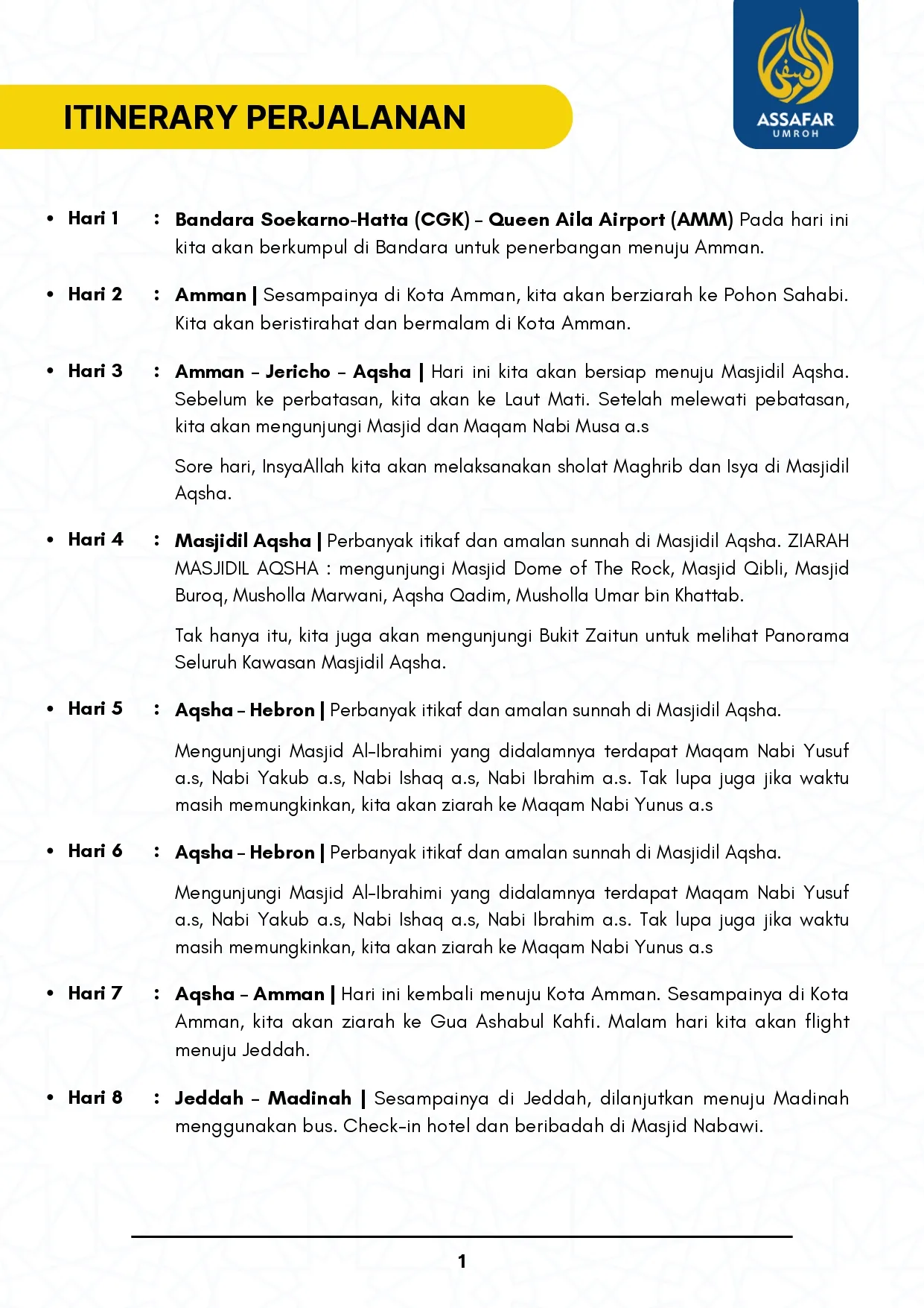 Assafar Legacy Journey (Umroh + Aqsha) | Program 15 Hari